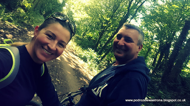 5. Docieramy do West Wood, tu czekają na nas wyrzeźbieni w drewnie strażnicy lasu, a ścieżka dość ostro prowadzi w dół do koryta strumienia. Przejeżdżamy mostem i skręcamy w lewo i kontynuujemy aż do zabudowań przemysłowych, a potem mieszkalnych.